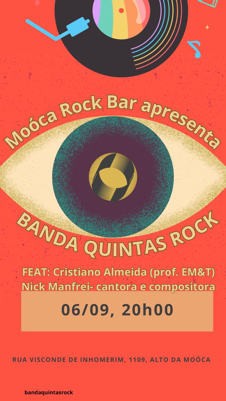 A Banda Quintas Rock realmente trouxe de volta o espírito do rock clássico dos anos 70 a 90, período de grande efervescência criativa e psicodelia musical. Agregando talentos musicais, criatividade e liberdade artística nas interpretações de cada canção, tudo para proporcionar uma experiência única, o Quintas Rock procura empreender apresentações em que a fórmula principal é a soma de: energia + catarse + alegria.